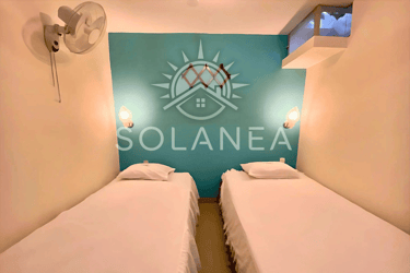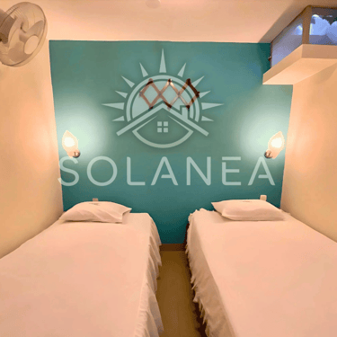 5 habitaciones : 5 camas matrimoniales + 1 habitación con 2 camas de 1 plaza y 1 habitación con 1 plaza adicional .