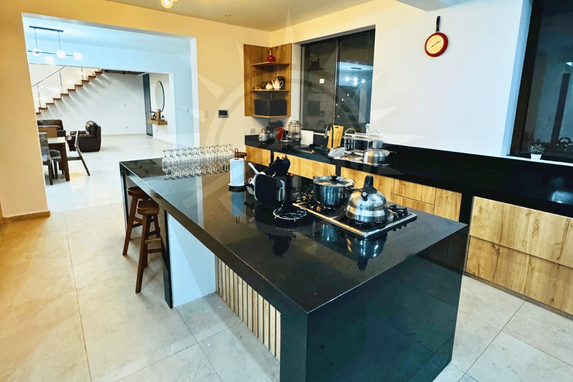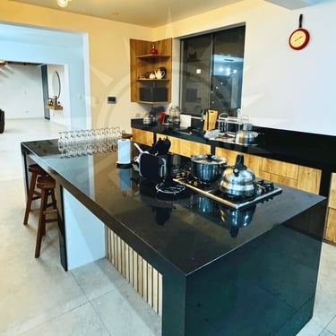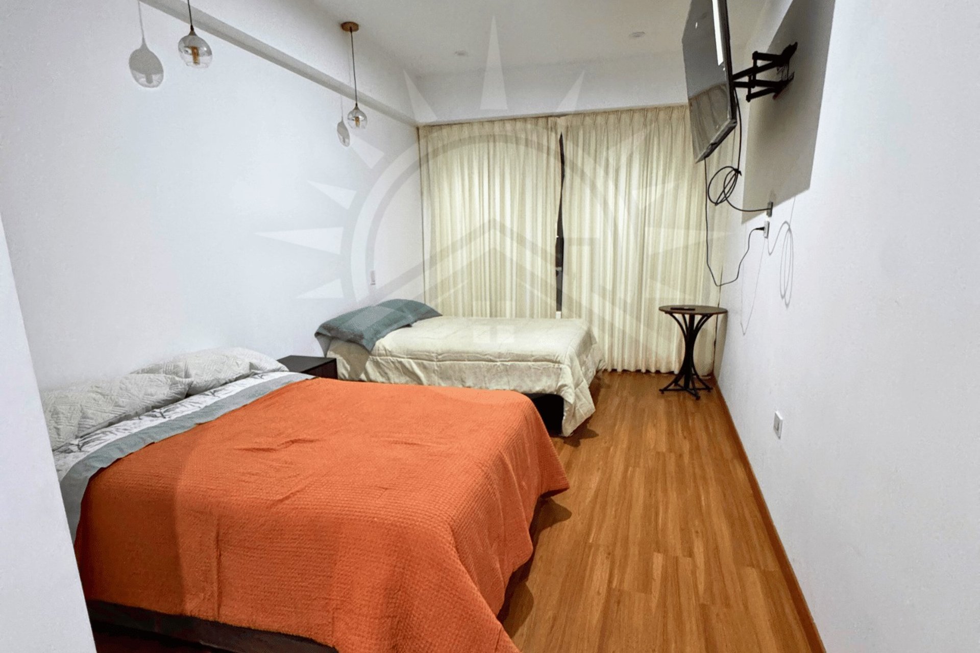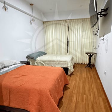 7 habitaciones : 5 Habitaciones matrimoniales con 2 camas en cada habitación y baño privado, 1 habitación cama king principal y 1 habitación con 6 camas y baño privado