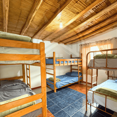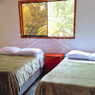 5 habitaciones : 4 camas matrimoniales + 2 habitación con 3 camarotes en total 6 camas de 1 plaza .