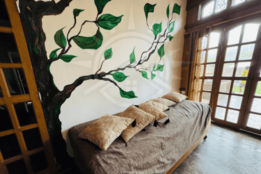 5 habitaciones : 5 camas matrimoniales + 1 habitación con 2 camas de 1 plaza y 1 habitación con 1 plaza adicional .
