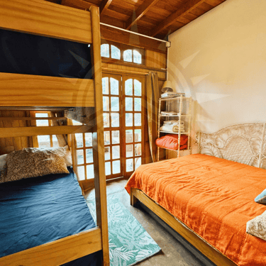 Alojamiento: 4 habitaciones equipadas con 3 camas matrimoniales y 3 camas individuales de 1 plaza.