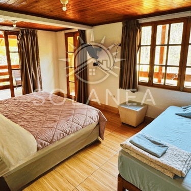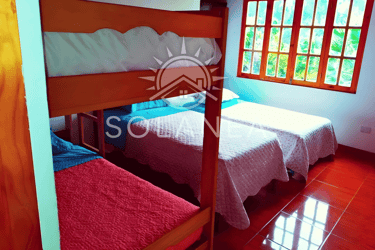 7 habitaciones : 3 Habitaciones matrimoniales + 3 habitaciones con 2 camarotes 3 filas 2 plazas abajo y arriba plaza y media + 1 habitación con 2 camas de 1 plaza y media. con una cama adicional debajo