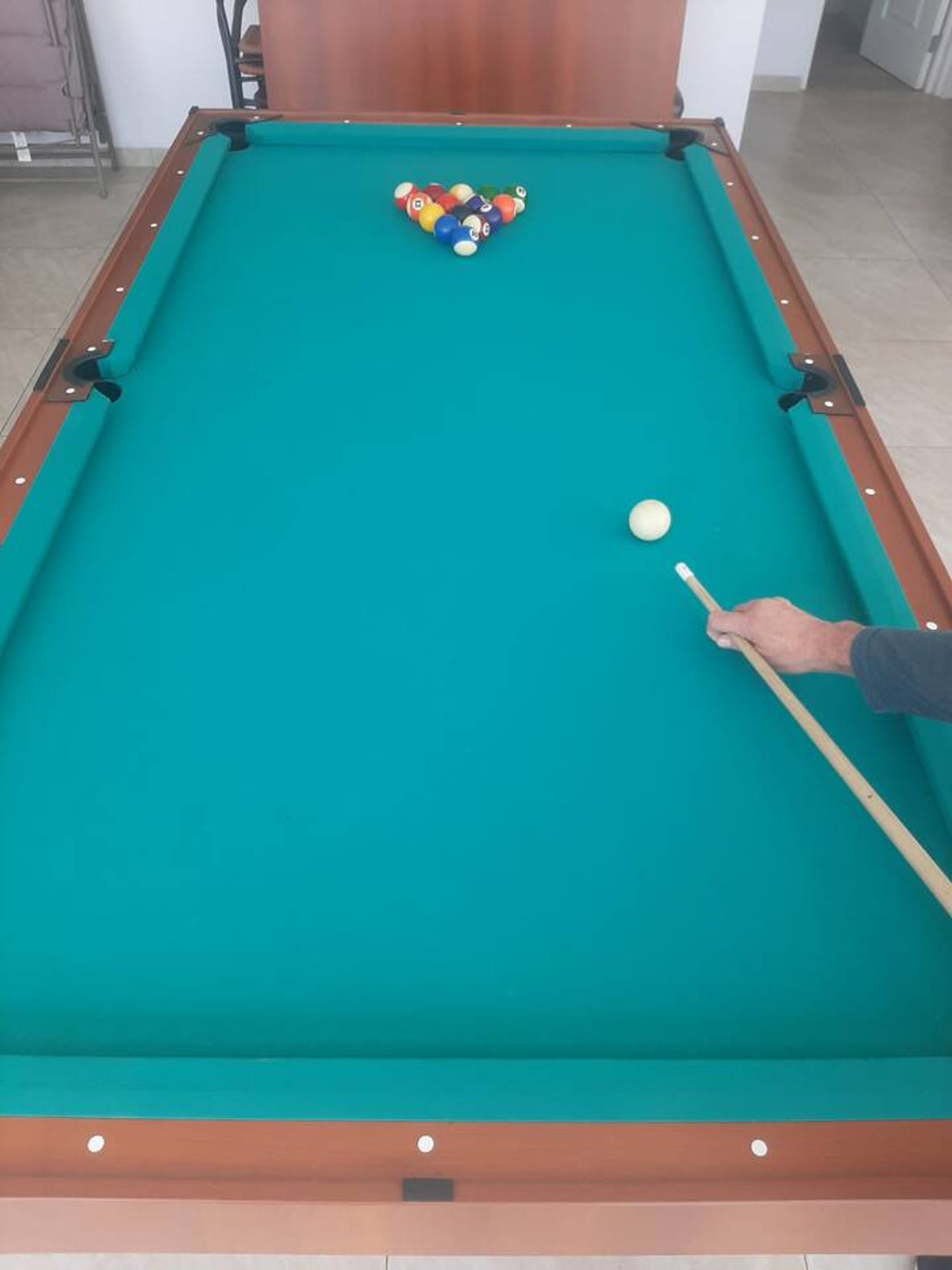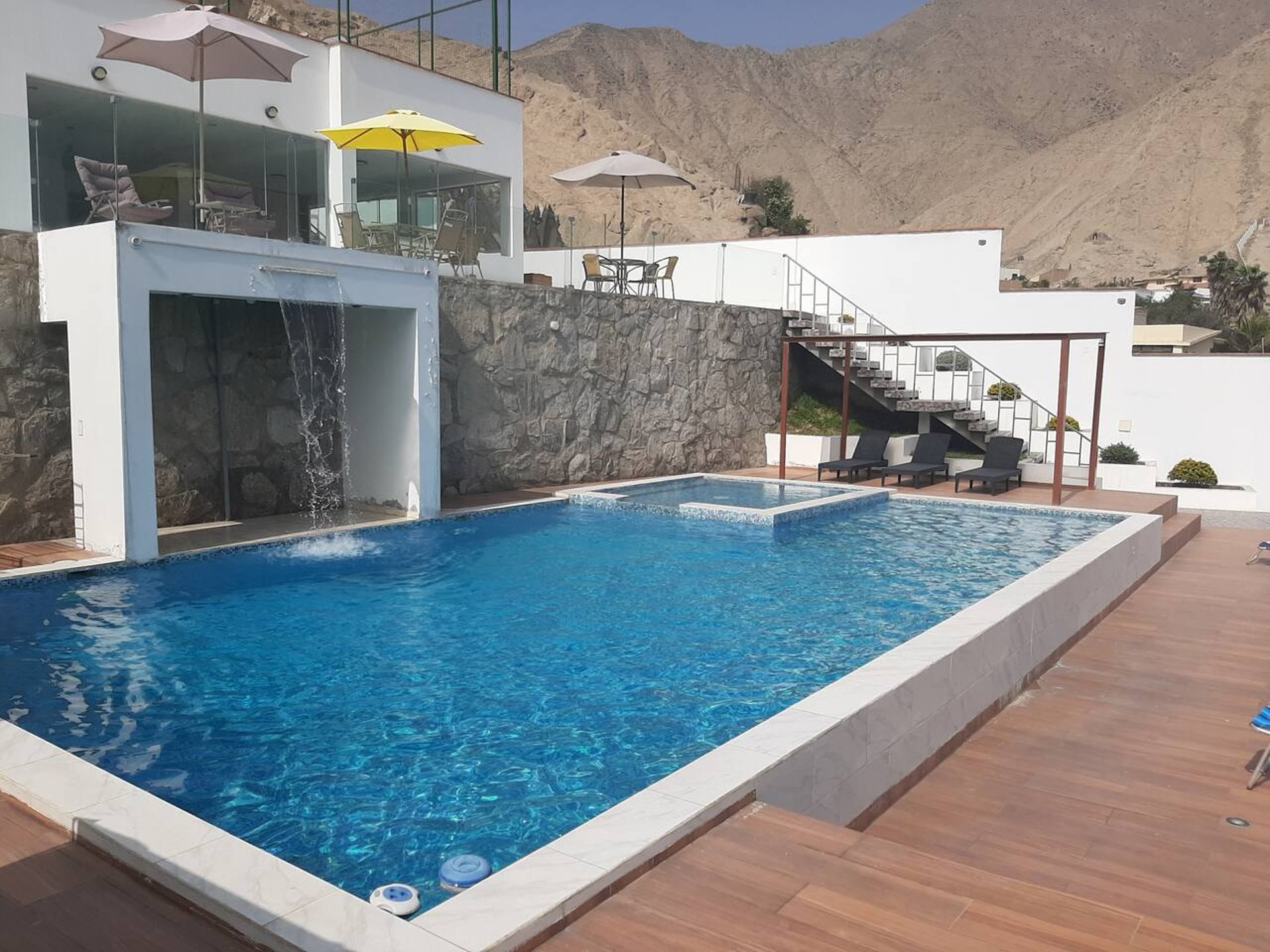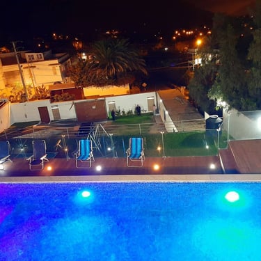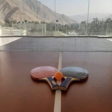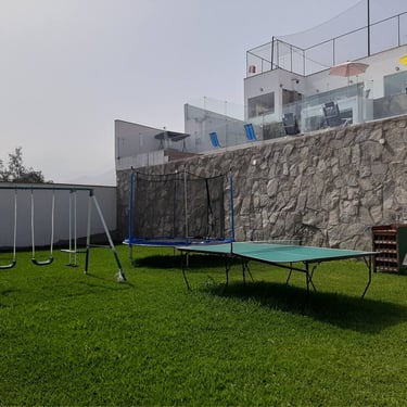 Cancha de fulbito, vóley, básquet y tenis; cama elástica, sapito, columpios, ping pong, fulbito de mesa; mesa de billar, piscina grande y patera, y más.